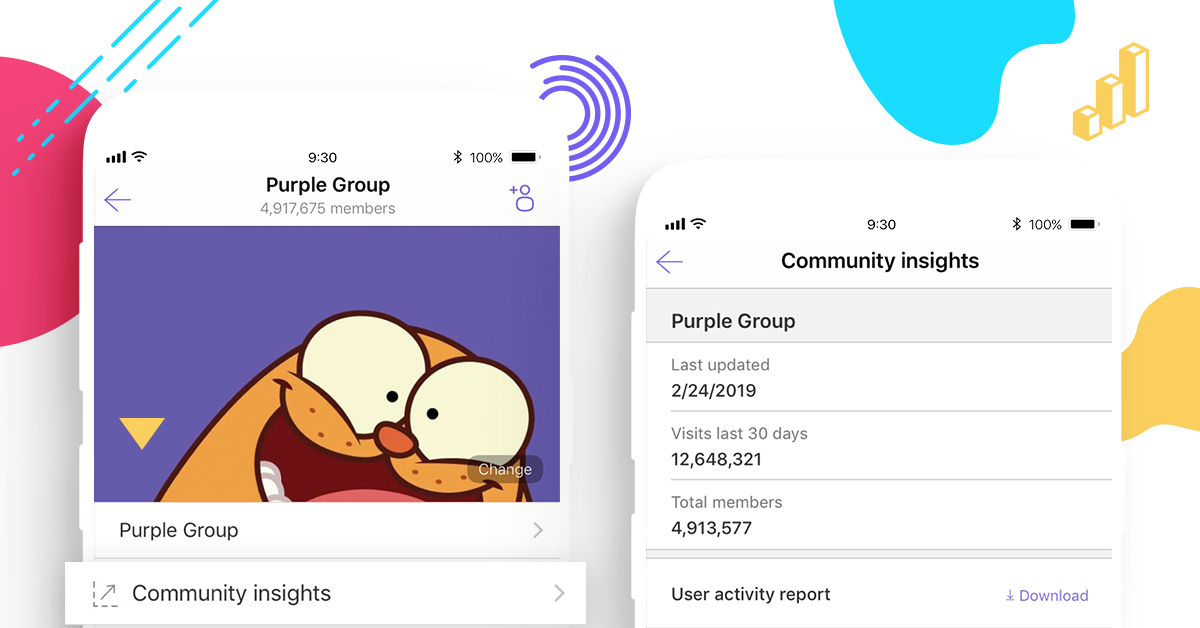 Viber is, as always, all about the privacy of the people who use the app. It is important to note that Community Insights does not give Community superadmins any personal information about individual members. The information included in Community Insights is a useful tool for understanding the high-level trends in your Community, while guarding the privacy of all members.