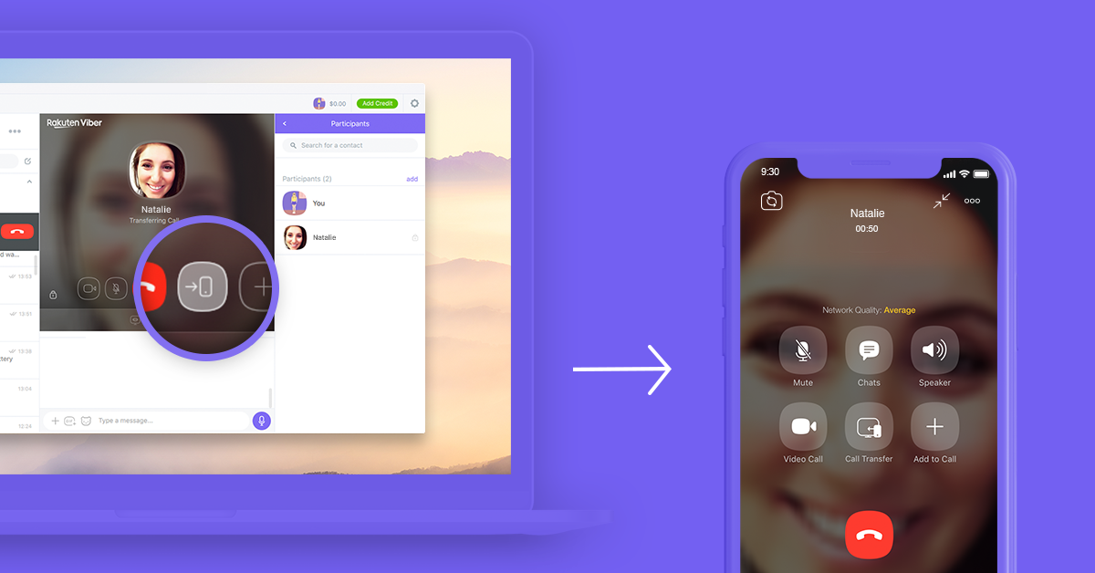 Make and receive calls, including Viber Out calls, directly from your computer, and if you want to change how you are chatting, you can transfer your call from your phone to your computer (or from your computer to your phone) without interrupting the flow.